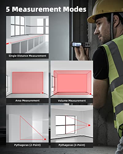 【Modalità di misure diversificate】 Strumento di misurazione laser M120, una misura di distanza laser in miniatura che indica distanza, area, volume, calcola la lunghezza in base al teorema di Pitagora. Ampiamente usato nella decorazione di interni, design fai-da-te, costruzione, logistica, magazzini, ecc.