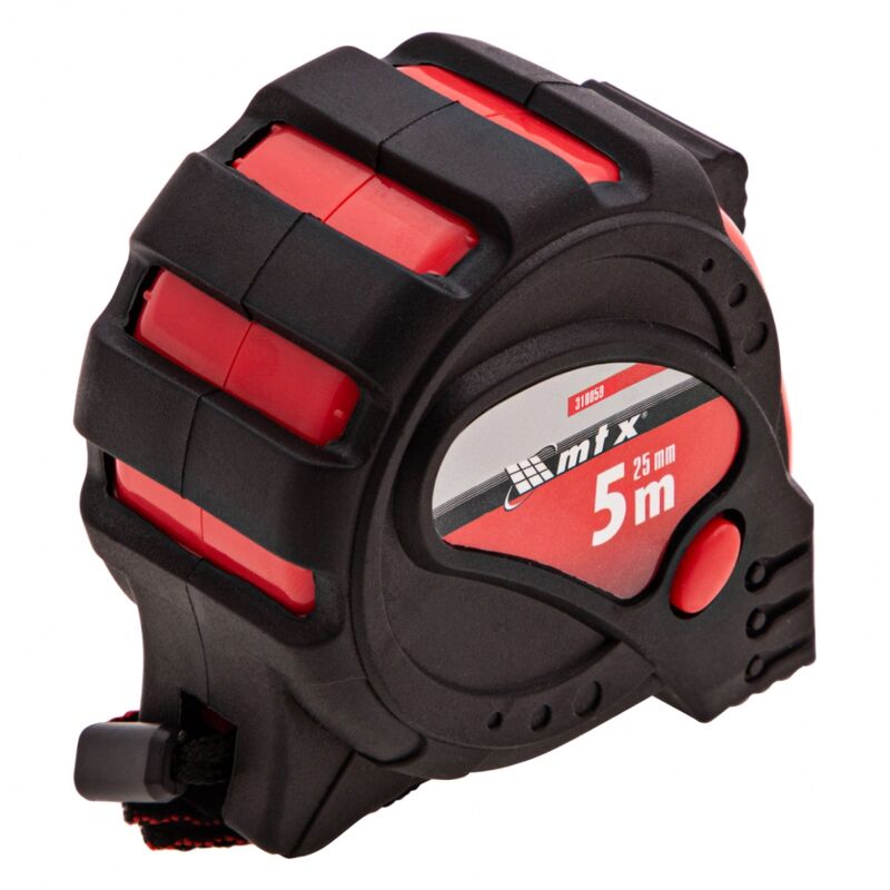 MTX - Metro a nastro - 5 m x 25 mm Metro a nastro classico, lungo 5 metri, ideale per tutti i tipi di lavori. Il metro SPARTA è progettato per misurare qualsiasi lunghezza fino a 5 metri ! È ideale per lavori interni o persino di giardinaggio grazie alla sua lunghezza considerevole. Il nastro ha una larghezza di 25 mm. Resistenza e precisione Il metro è realizzato in plastica ABS resistente agli urti, quindi puoi usarlo senza preoccupazioni su qualsiasi cantiere. Gancio magnetico Dispone di un gancio magnetico progettato con la tecnologia TrueZero, che gli conferisce una precisione estrema ! Pratico! Il metro è dotato di un gancio da cintura che ti permette di trasportarlo facilmente e averlo sempre a portata di mano. Risparmio di tempo, nessuna possibilità di perderlo, è l'ideale! Caratteristiche Generale Colori Nero e rosso Gamma Status Magnet Tipo di Prodotto Metro a nastro Materiali Plastica Gomma Magnete Sì Misura Funzione del prodotto Misurazione delle lunghezze Lunghezza