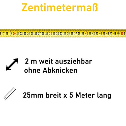 Forte forza di trazione: molti nastri hanno il problema che la lama non ritorna completamente o abbandona lo spirito dopo poche settimane. Questo metro a nastro ha una forte molla che ritrae il nastro in modo affidabile e irradia una lunga durata.