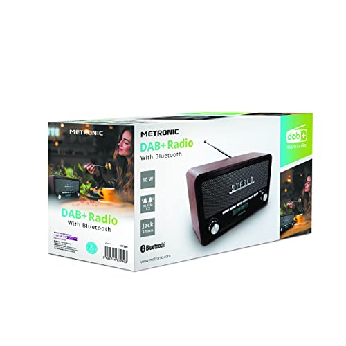 Metronic 477230 - Radio vintage digitale Bluetooth, DAB+ e FM RDS con ingresso audio, funzione doppio allarme e dimmer