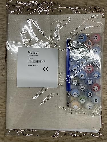 [COMPOSIZIONE DEL PRODOTTO] Il set di pittura ad olio per numeri Metuu è composto da pigmento acrilico sicuro e non tossico di alta qualità, tela con bozze chiare e 3 pennelli in nylon di diverse dimensioni.