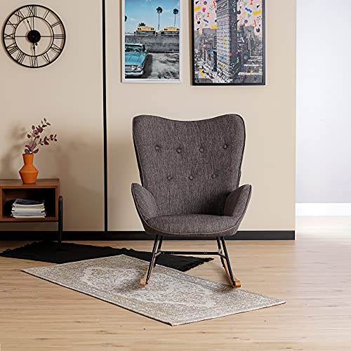 MEUBLE COSY Sedia a Dondolo Moderna Poltrona Relax con Braccioli E Alto Schienale per Soggiorno, Grigio, 71x85x97cm