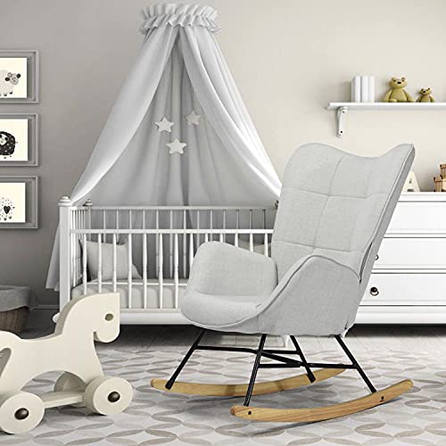 MEUBLE COSY Sedia a Dondolo Moderna Poltrona Relax con Braccioli E Alto Schienale per Soggiorno, Tela, Grigio, 69x84x97 cm