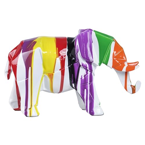 Meubletmoi Statua elefante geometrica in resina con colature di pittura multicolore 33 x 21 x 15 cm - Dumbo