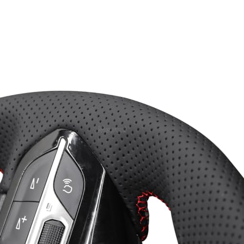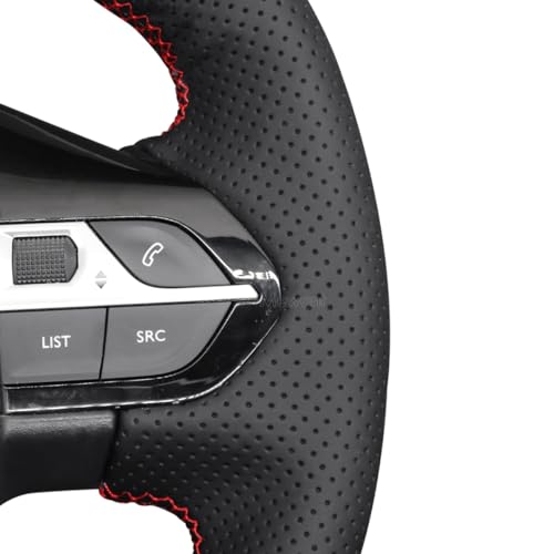 MEWANT Coprivolante per auto in pelle PU e striscia superiore rossa per Peugeot 208 2020-2022/308 (SW) 2021-2022/2008 2019-2022/3008 2016-2022/508 2018-2022/508 SW 2016-2022/508 19-20