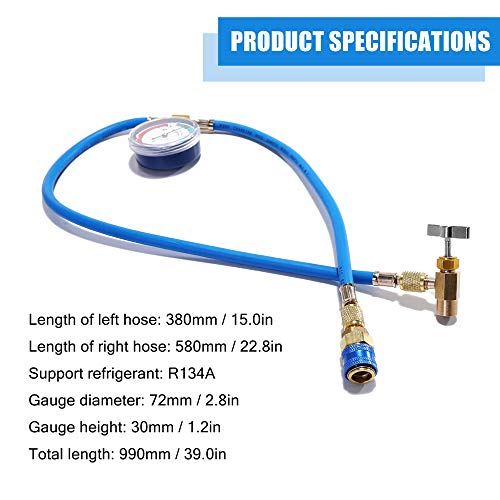 Mewmewcat Adattatore per refrigerante per Aria condizionata per Tubo di Ricarica,Kit Calibro di misurazione del refrigerante per la Ricarica del refrigerante con Aria condizionata per Auto AC R134A