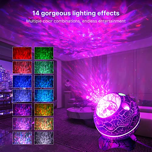 Proiettore Di Luce Notturna A Forma Di Uovo Di Dinosauro: La Combinazione Di Nebbia E Luce Stellata Può Essere Accesa Da Sola O In Combinazione (Fino A 14 Colori) E La Proiezione Del Flusso Di Nebbia Crea Un'Atmosfera Rilassante, 4 Velocità E Luminosità. La Galassia Stellare Ad Alta Risoluzione Può Essere Proiettata Sulla Parete E Sul Soffitto, Ti Sembrerà Di Viaggiare Nella Galassia