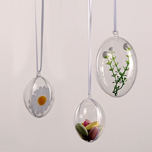 MEYA - Palline di Natale trasparenti a forma di uovo, 8 x 6 cm, da appendere, in plastica trasparente, per feste, feste, casa, 10 pezzi