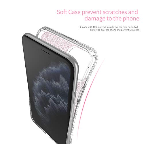 Resistente ai Graffi:TPU silicone e glitterata diamanti (esterno) + trasparente sottile brillanti Pellicola protettiva (centrale) + protezione in PC (interno) offre un retro rigido per PC,La cover iPhone 11 Pro Max.paraurti in TPU flessibile ma resistente offre resistenza e difesa per urti e graffi quotidiani minimi.