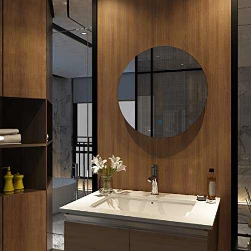 Meykoers Specchio Bagno 60 cm Diametro, Specchio Bagno con Luce con Interruttore tattile, Specchio da Bagno Rotondo