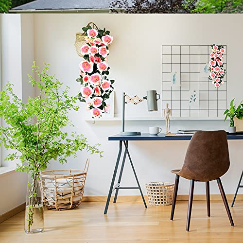 MeYuxg Fiori Artificiali da Appendere Parete, 2 Pezzi Rose Artificiali Pendenti, Ghirlanda di Fiori da Appendere Piante Finte per Decorazioni Sospensione Giardino Balcone Matrimonio, Rosa