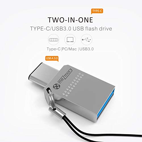 MeZmory - 2 in 1 Dual Chiavetta USB 32GB < Type C e USB-A 3.0 > Memory Stick Tipo C 32 gb - Impermeabile & Veloce in Metallo - Flash Drive Ideale per Portachiavi/Anelli in Argento