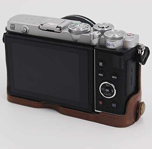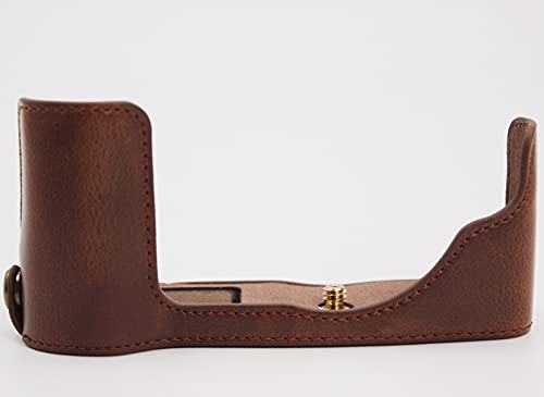 Mezza custodia in pelle PU apertura inferiore per Olympus Pen E-P7 con treppiede design marrone scuro
