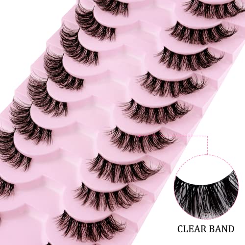 Mezze Ciglia Finte 3D Naturale Multipack 10 Paia, Pure Fatte a Mano, Cancella Banda Lungo Ingombrante Spessore Extension, Moda per il Trucco, Matrimoni di Feste (1002)