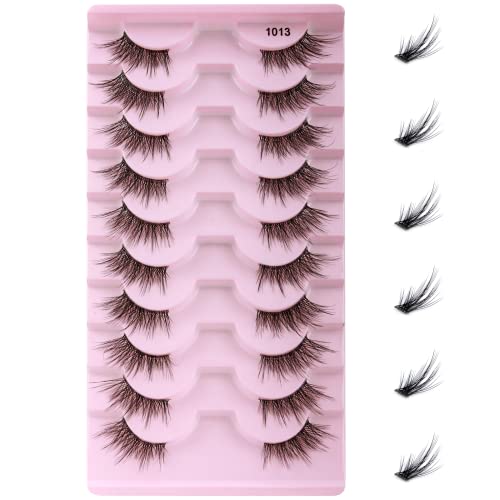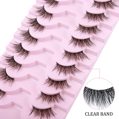 Mezze Ciglia Finte 3D Naturale Multipack 10 Paia, Pure Fatte a Mano, Cancella Banda Lungo Ingombrante Spessore Extension Moda per il Trucco, Matrimoni di Feste (1013)
