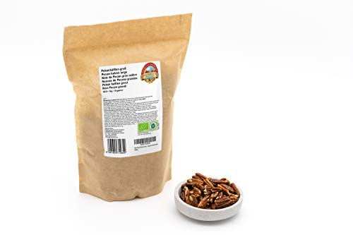 Volume di consegna: 1 x 1 kg di noci pecan jumbo biologiche / metà di noci pecan extra large / non tostate e non salate / cibo crudo / vegano