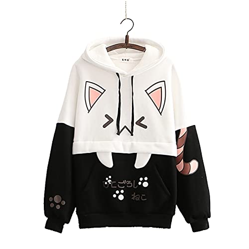 Mfacl Abbigliamento Felpa con Cappuccio Giapponese Cute Cat Peluche Studente Studente Studente Studente Studente Cappotto Addensato Nuovo Stile in Autunno e Inverno (Color: Black, Size: One Size)