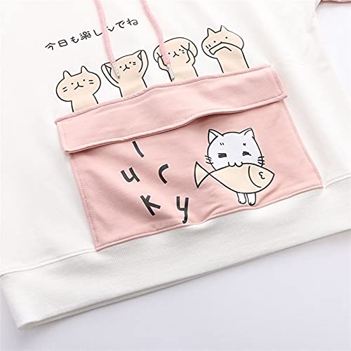 Mfacl Felpa con Cappuccio Felpa Kawaii Hoodie Harajuku Dolci Giapponesi Pesce Carino Gatto con Cappuccio per Ragazze morbide Streetwear Donne Top (Color: Long Sleeve, Size: L)