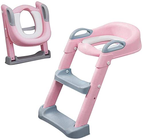 MFFACAI Vasino Trainer WC Trainer Vasino per Bambini Sedile WC con Scaletta Vasino per WC 38x22x39cm (Color: Pink)