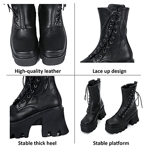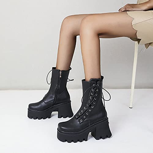 MGEM Donna Stringati in Stivaletti Gotico Punk Biker Militare Combat Anfibi Platform con Zeppa 9cm Tacco Alto Stivaletti,Nero,39 EU