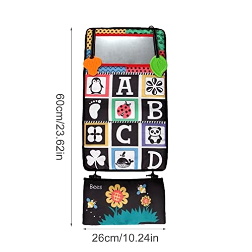 Mgichoom Specchio da terra Tummy Time | Libro in stoffa pieghevole con massaggiagengive,Specchio per attività da pavimento in bianco e nero ad alto contrasto, gioco a pancia in giù
