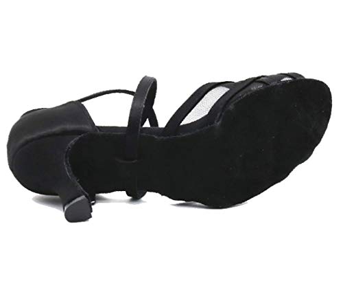 MGM-Joymod Donne Comfort Mesh Glitter Peep Toe Salsa Tango Sala da ballo Latino Moderno Scarpe Da Ballo Sandali Festa di Nozze, Nero 7 5 cm Tacco, 40.5 EU