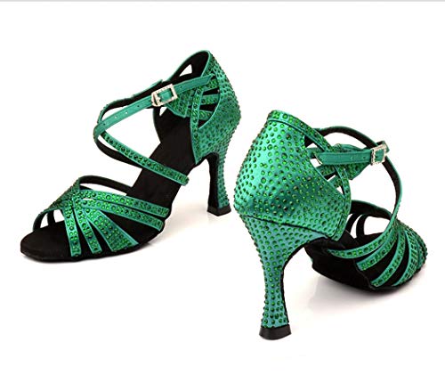 MGM-Joymod Sandali da ballo, da donna, aperti in punta, con cinturini incrociati e strass, ideali per feste, matrimoni, balli latini, moderni e tango, Verde (Tacco verde 9 cm.), 38 EU