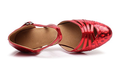 MGM-Joymod - Scarpe da ballo da donna, con punta chiusa, con glitter sintetici, ideali per la sera e la sala da ballo, Rosso (Tacco rosso floreale 6 cm), 37.5 EU