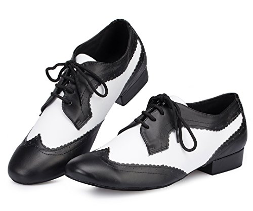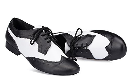 MGM-Joymod - Scarpe da ballo da uomo con lacci in pelle e punta rotonda Social Dacne Salsa Tango Samba Jazz Rumba Ballroom Latino Moderna, Nero (Nero Bianco tacco 2 5cm), 42 1/3 EU