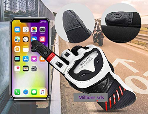 MH96_Italy Guanti Moto in Pelle Professionali Traspiranti Touch screen da pista viaggio con protezione in carbonio (M, Bianco)