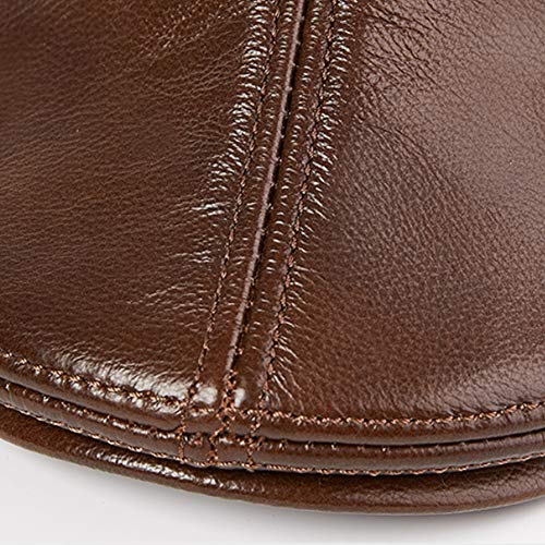 MHGLOVES Unisex Classico Pelle Coppola Cappello Piatto Berretti Piatti Baschi Scozzesi,Uomo Donna Vintage Berretto in Pelle Berretto con Earflap,56-61CM (Marrone),Marrone,XXL