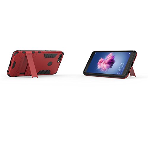 MHHQ Huawei P Smart Custodia, Huawei P Smart Cover, 2 in 1 Nuovo Armour Stile Resistente Hybrid Dual Layer Armatura Defender PC + TPU Custodie con Supporto [Custodia Antiurto] per Huawei P Smart -Red