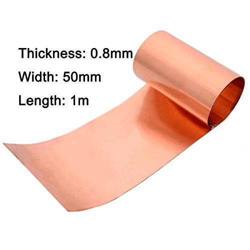 MHUI Foglio di Rame Puro Lamina Sottile di Metallo Cu per Saldatura brasatura Fai da Te Lunghezza 1 m, Larghezza 50 mm Striscia di Rame,Thickness: 0.8mm