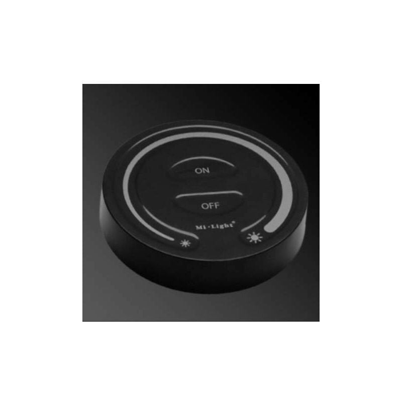 Controllo remoto touch Mi-Light per nastro di colore singolo. Funzione di variatore leggero che permette di regolare l'intensità della luce dal 0% al 100%. Funziona con frequenza radio: gamma lunga fino a 30m senza dover puntare alla lampadina. Funziona in 3V e con 2 batterie. Dimensioni: Ø80, altezza: 17mm. Garanzia 2 anni. Controllo remoto touch Mi-Light per singolo nastro di colore è un sofisticato e intuitivo dispositivo di controllo dell'illuminazione. Progettato per nastri LED a singolo colore, offre una funzione di variatore leggero che consente di regolare l'intensità dell'illuminazione dal 0% al 100%. Se si desidera una luce morbida per un'atmosfera accogliente o una luce forte per illuminare una stanza, questo telecomando soddisfa tutte le vostre esigenze. Funzionamento a radiofrequenza, telecomando Mi-Light offre una lunga gamma fino a 30 metri, eliminando la necessità di puntare direttamente alla lampadina per controllare l'illuminazione. Questo vi offre grande