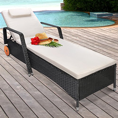 MIADOMODO Sdraio giardino rattan lettino giardino esterno sdraio prendisole rattan nero nel set da 2 pezzi