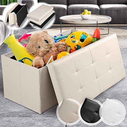 MIADOMODO Sgabello Pieghevole Ottomano - Ecopelle, 85x40x40 cm, Max. Carico 160 kg, Coperchio Rimovibile, Colore a Scelta - Pouf Sedile, Poggiapiedi Imbottito, Cassapanca, Mobili (Beige)