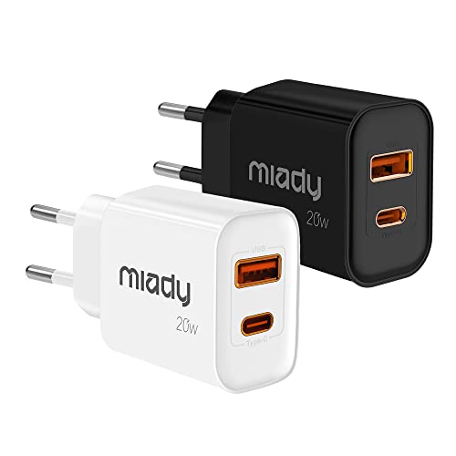 Comodo design 2 in 1 Miady 20 W USB C caricatore con porta USB-C (Power Delivery) e porta USB-A (Quick Charge 3.0) è possibile caricare facilmente fino a 2 dispositivi contemporaneamente.