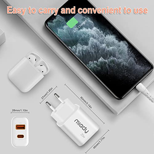 Miady 2 caricabatterie USB C Miady da 20 W, 2 porte PD USB C alimentatore QC 3.0 Power Adapter spina compatibile con iPhone 14/14 Pro/14 Pro Max/13, 12, 11, SE, AirPods, iPad, Galaxy ecc.