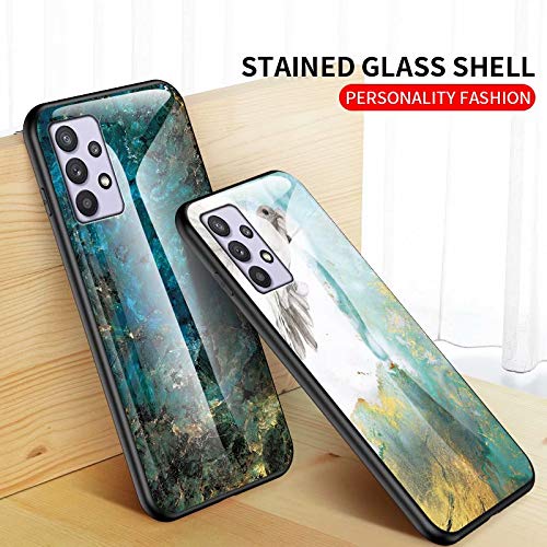 Miagon Vetro Custodia per Samsung Galaxy A32 5G,Marmo 9H Vetro Temperato Cover Sottile Protettiva AntiGraffio con Silicone Morbido Cornice,Oro Nero
