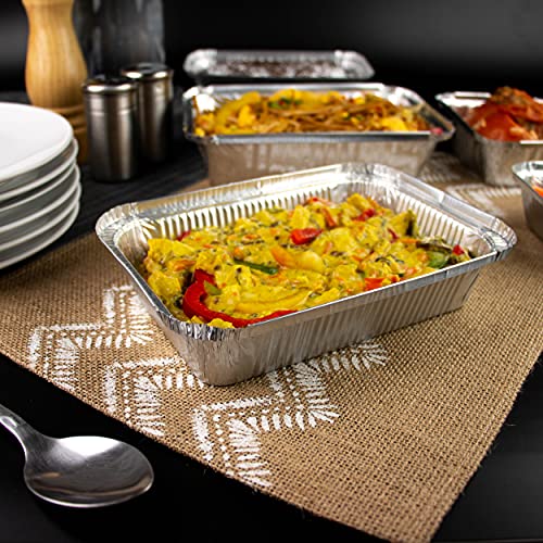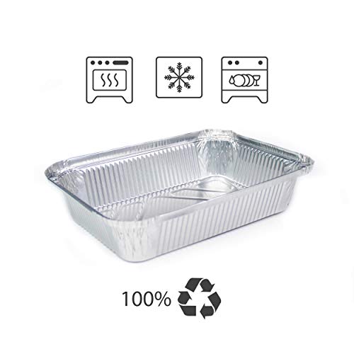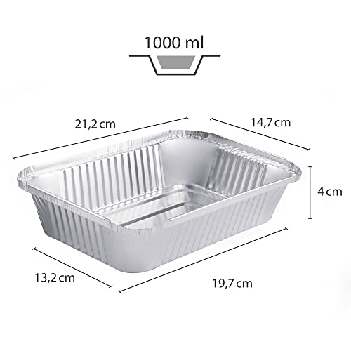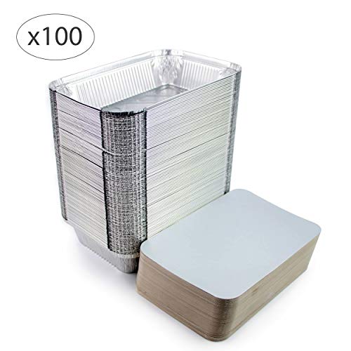 Miamex - Vaschette in alluminio usa e getta con coperchio per trasporto di cibo, congelamento, cottura (Confezione da 100), 1 compartiment Metallo, 800ml