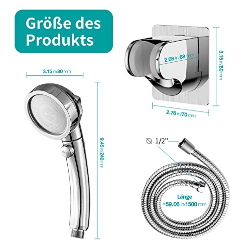 【Soffione doccia ad alta pressione】: la tecnologia dei microugelli rende i fori di scarico più piccoli e più densi, aumenta la velocità del flusso dell'acqua, aumentando la pressione dell'acqua della doccia. Il soffione doccia a risparmio idrico aumentato della pressione dell'acqua offre un forte flusso, rende la pelle più rilassata, goditi il massaggio e la spa.