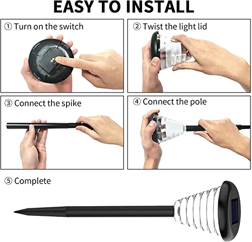 [Facile da usare]: è sufficiente collegare le parti, inserirle nel terreno e accendere l'interruttore per assorbire l'energia solare per la ricarica, senza bisogno di attrezzi o cavi.