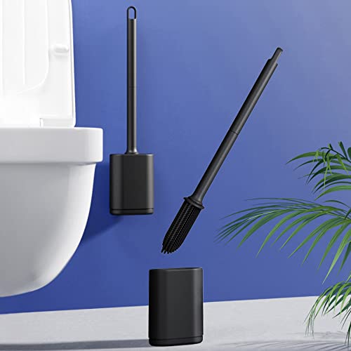 Micacorn Scopino per WC, Spazzolone WC Silicone, Set di Spazzole e Supporto per WC, Spazzole per WC in Silicone Morbid con Base Antigoccia, Spazzola WC Montaggio Parete e Pavimento