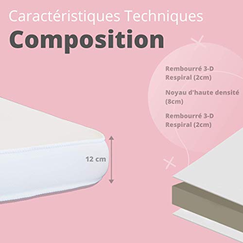 Materasso per neonati con anima eliocel ad alta densità da 12 cm con due reti 3D traspiranti.