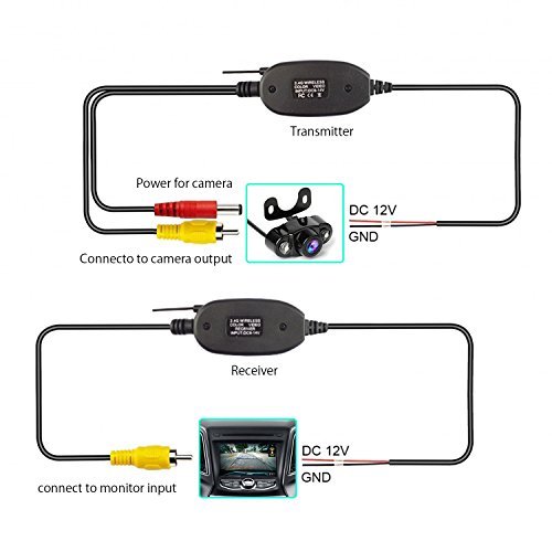 TRANSCEIVER WIRELESS: Il kit di trasmissione e ricevitore video a colori wireless è utile per la telecamera retromarcia posteriore. Niente complicato nel cablaggio dell'automobile. Non c'è bisogno di un cavo video aggiuntivo
