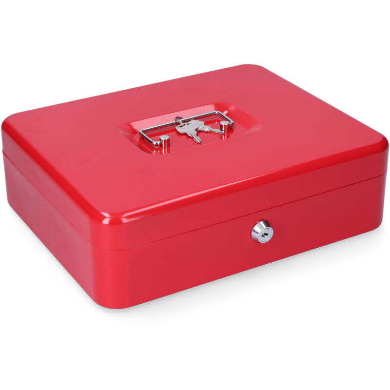 Scatola de caudales cfc09. dimensioni 300x240x90mm. include vassoio.dispone de asa per un facile trasporto. materiale acciaio. finitura rossa. (viti non incluse).