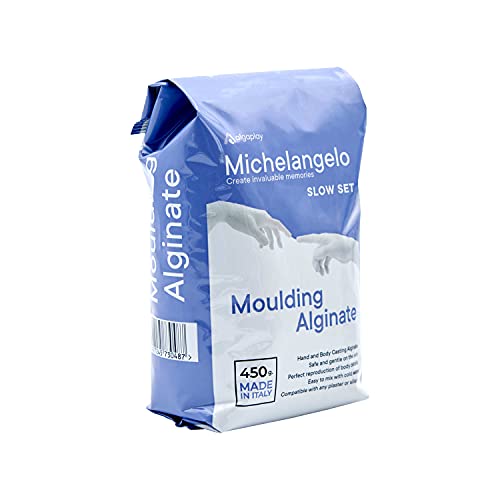 Michelangelo Moulding Alginate Slow Setting. Alginato cromatico per Impronte di Alta precisione, Perfetto per Realizzare calchi delle Mani o del Corpo. Prodotto in Italia. (4 Buste)