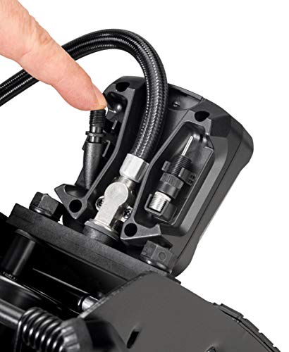 Pratico spazio per riporre gli adattatori, direttamente sul dispositivo. Il tubo dell'aria compressa da 67 cm facilita il gonfiaggio indipendentemente dalla posizione della valvola e può essere riposto all'interno del telaio della pompa dopo l'uso.