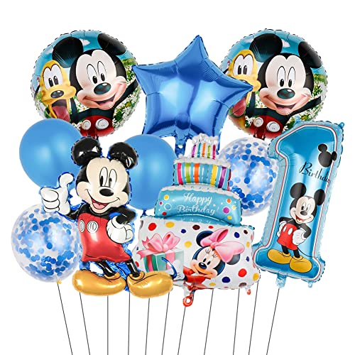 Mickey Feste Palloncini, 10 Pezzi Bambini 1 Anno Mickey Compleanno Feste Palloncini, Tema Decorazioni Forniture Foglio Palloncino per Bambini Compleanno Decorazioni
