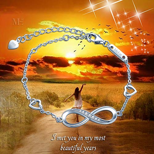 MicLee - Bracciale da donna in argento Sterling 925 con zirconi, anallergico, simbolo dell'infinito, doppio cuore e Argento, colore: argento, cod. M041-silver